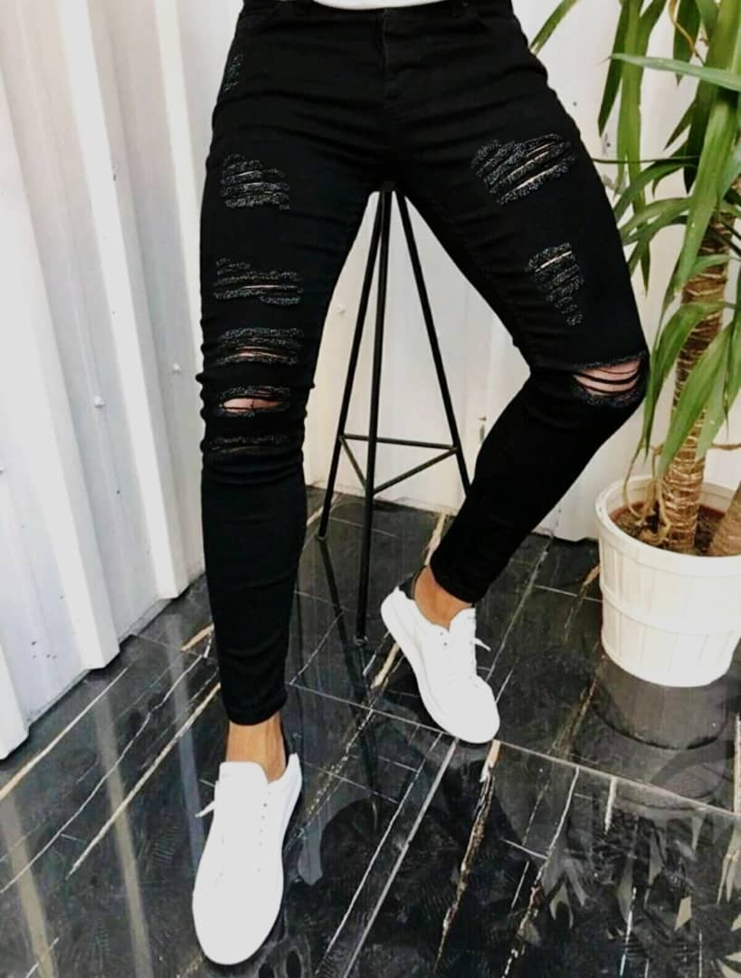 این شلوار جین مردانه مدل اسکینی و کشی زاپ دار (Ripped) و فیت جذب (Slim Fit)، گزینهای ایدهآل برای طرفداران استایل مدرن و خیابانی است.