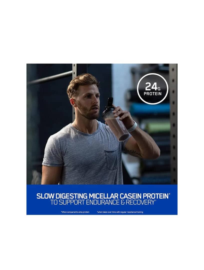 پودر کازئین میسلار ۱۰۰٪ Gold Standard اپتیموم نوتریشن با فرمول هضم آهسته، حاوی ۲۴ گرم پروتئین خالص و آمینواسیدهای ضروری است .