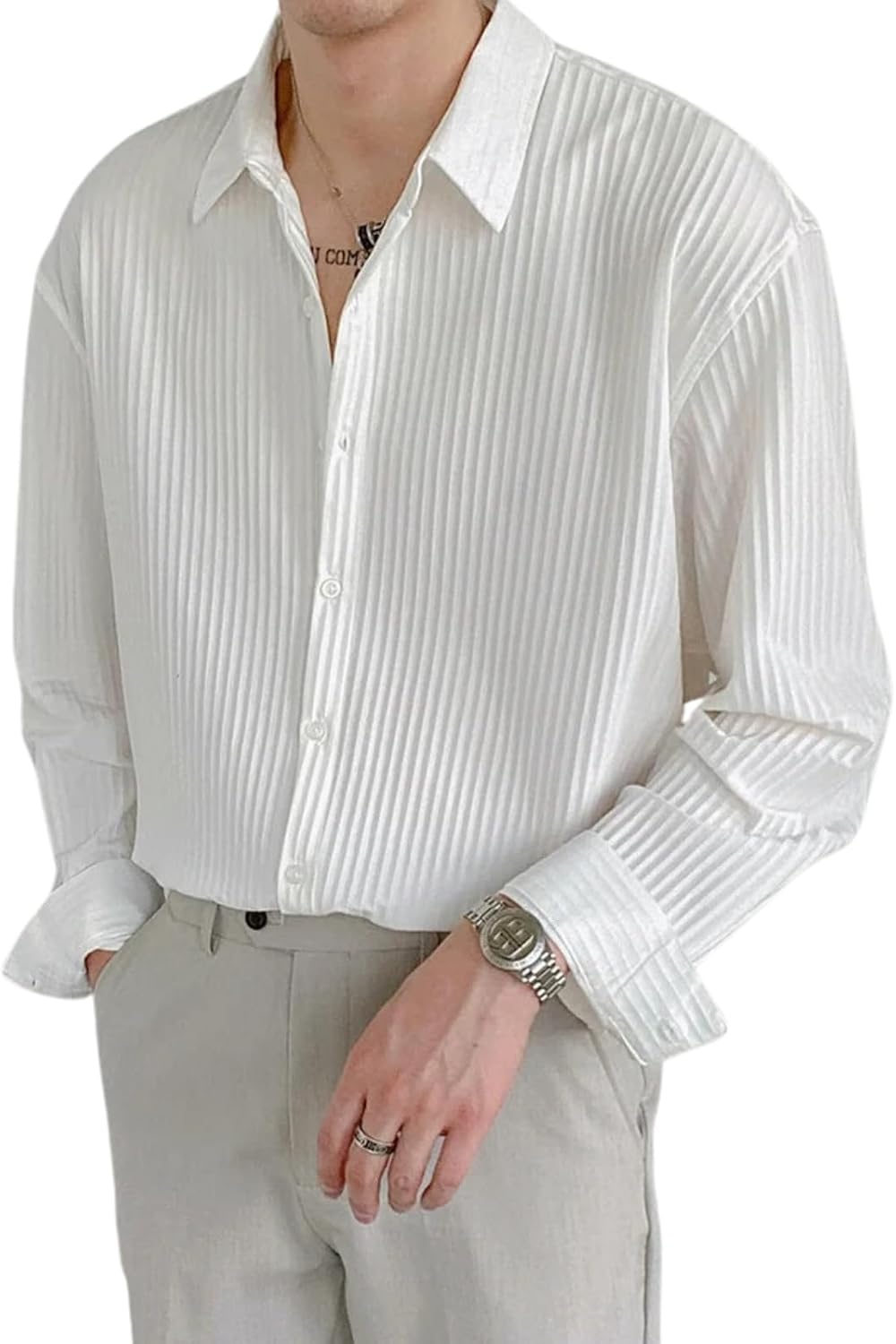 پیراهن مردانه GRECIILOOKS مدل Textured Regular Fit Shirt با طراحی ساده و شیک، مناسب برای استفاده روزمره و محیطهای نیمهرسمی است.