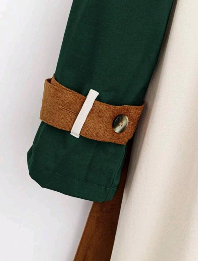 طراحی رنگی بلوک این کت ظاهری مدرن و شیک پیدا کند و آن را از سایر لباسهای بادی متمایز کند.