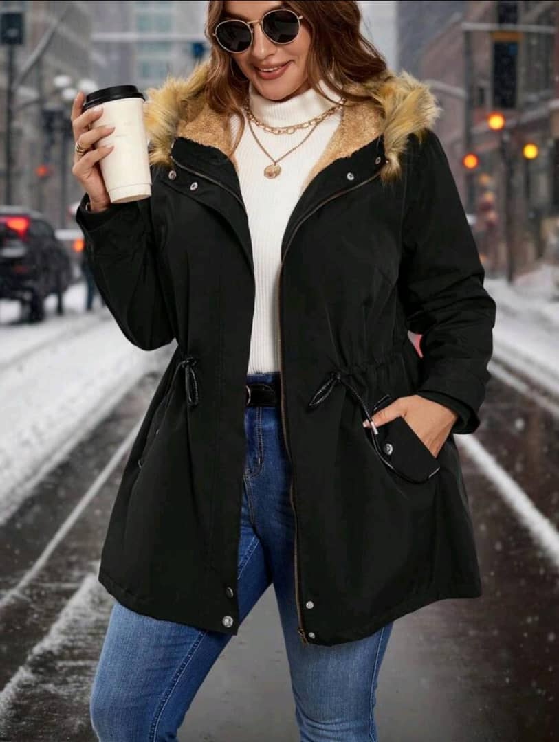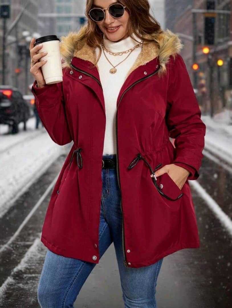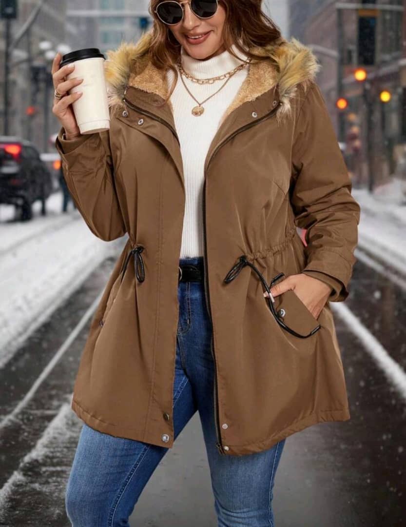 این کت زمستانی سایز بزرگ زنانه SHEIN Clasi با طراحی پددار و یقه خزدار نرم و گرم، انتخابی ایدهآل برای روزهای سرد پاییز و زمستان است.