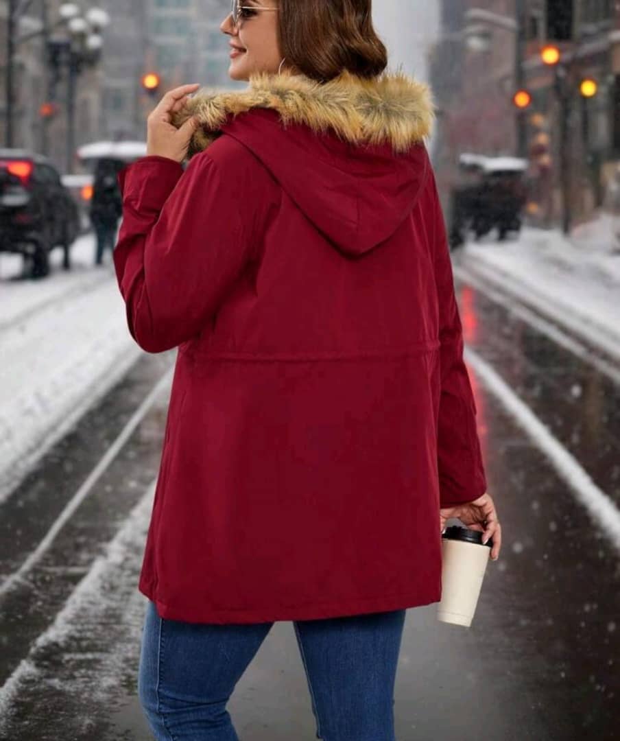 کت زمستانی سایز بزرگ زنانه SHEIN Clasi با کلاه و یقه خزدار، طراحی پددار و گرم